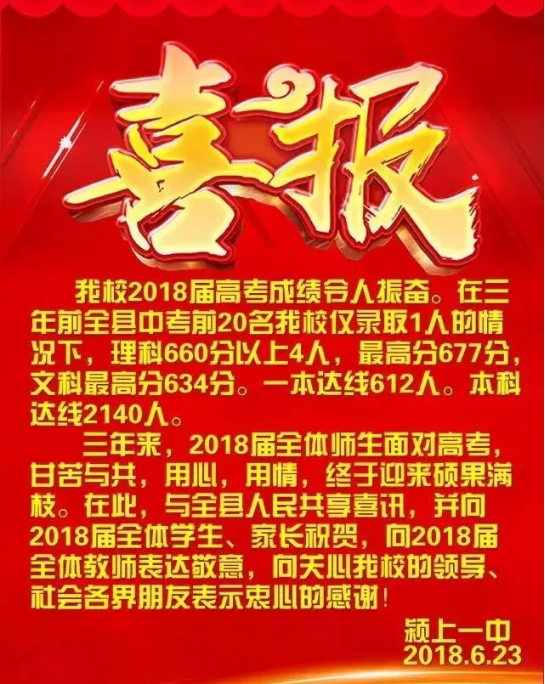 颍上一中2018届高考喜报